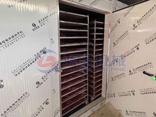 客戶購買的是箱式五味子烘干機,采摘挑選的五味子均勻鋪在物料托盤上